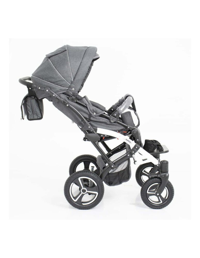 - Bogate wyposażenie standardowe - wózek ma wiele użytecznych akcesoriów, takich jak pojemny kosz, zagłówek, pasy bezpieczeństwa, podpory boczne, podnóżki czy daszek.