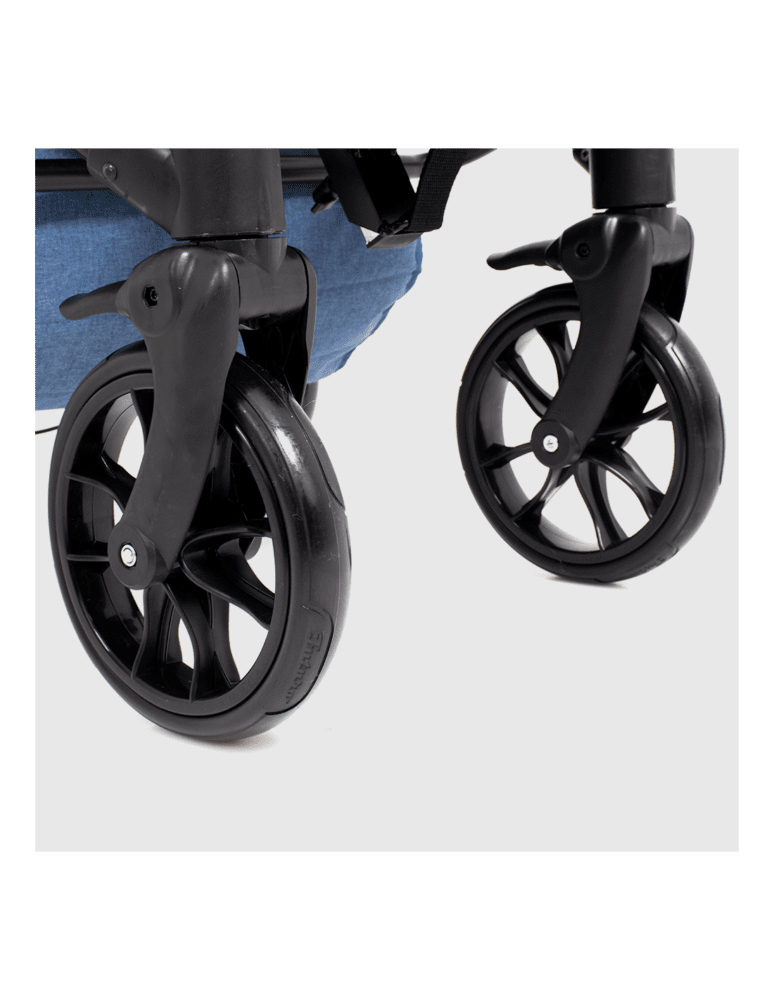 - Łatwa obsługa - wózek ma intuicyjny sposób regulacji oraz prosty montaż. Wózek można złożyć jednym ruchem dzięki opatentowanemu systemowi i łatwo zmieścić w bagażniku samochodu.