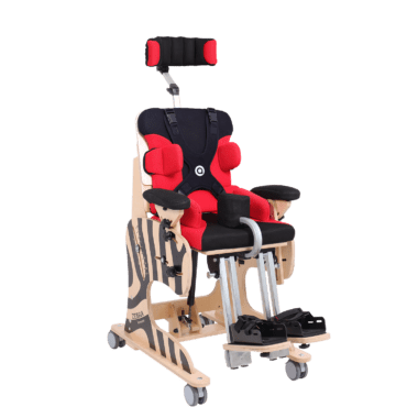 Możliwość zmiany kąta pochylenia całego siedziska. Regulowana stopką i sprężyną gazową, dzięki czemu opiekun w momencie regulacji ma swobodne ręce.