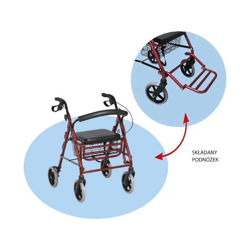 PODPÓRKA REHABILITACYJNA 4-KOŁOWA – ALUMINIOWA COMFORT ARMEDCAL