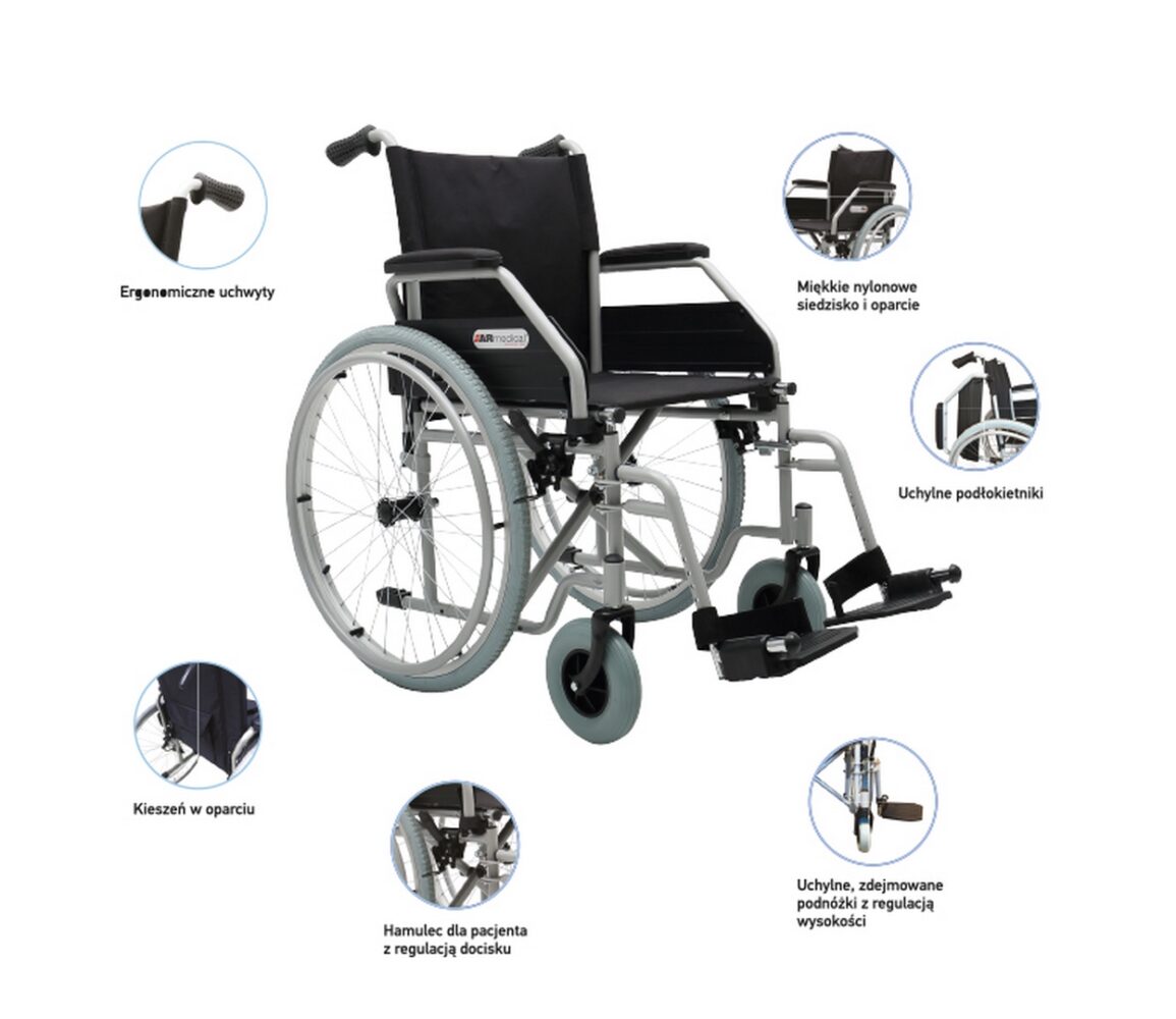 ARmedical AR-405 to wózek inwalidzki, który pozwoli Ci na pełną niezależność i swobodę w codziennym życiu. Dzięki wygodzie i funkcjonalności, zapewni Ci komfort podczas długich spacerów i jazdy, a także pozwoli na łatwe i wygodne przemieszczanie się. To idealny wybór dla osób, które cenią sobie wygodę, bezpieczeństwo i nowoczesny design.