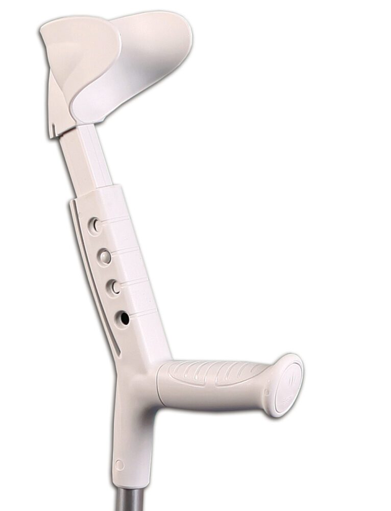 Kula łokciowa z podwójną regulacją. Regulacja odległości pomiędzy rękojeścią a podparciem przedramienia w zakresie od 18 do 25cm.