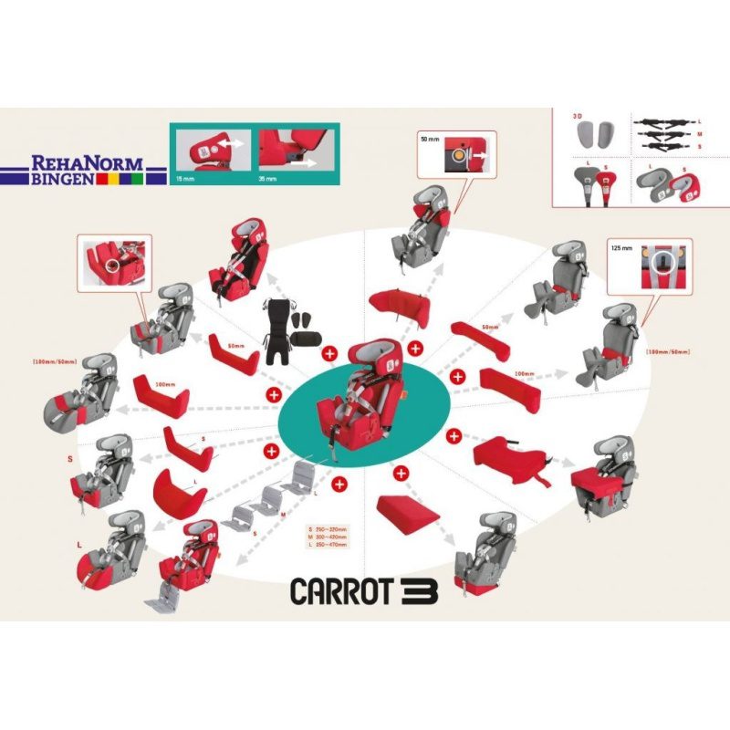 System CARROT 3 ma szerokie możliwości dopasowania fotelika do potrzeb dziecka dzięki wielu akcesoriom takim jak: