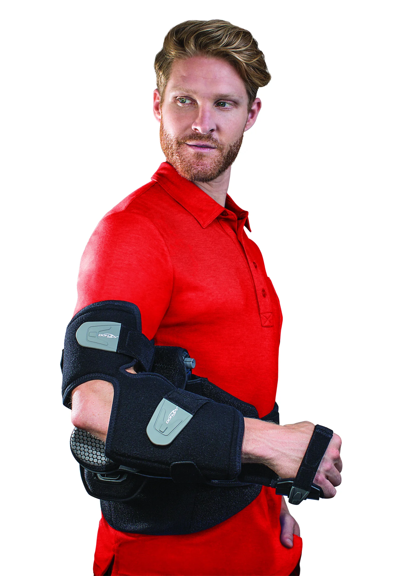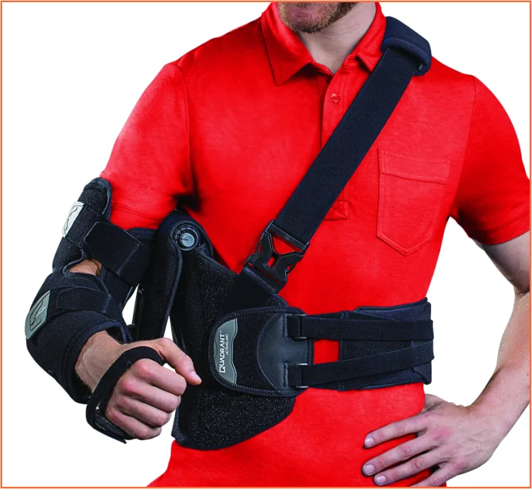 Niski profil i regulowany pierścień na ramię łatwo przesuwa się po zdrowym ramieniu, pomagając równomiernie rozłożyć ciężar i odciążyć szyję