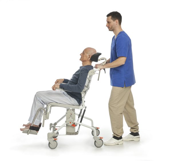 zarówno dla użytkownika, jak i dla asystenta. Posiada łatwy w obsłudze mechanizm pochylania siedziska przez opiekuna przy jednoczesnym zachowaniu kontaktu wzrokowego z pacjentem.