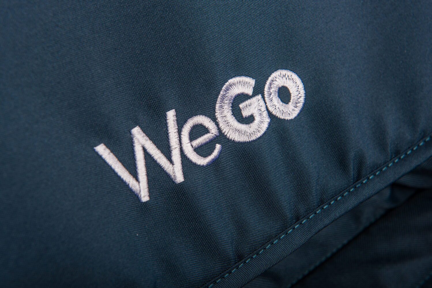 W standardzie WeGo jest wyposażony w wiele pomocnych akcesoriów, takich jak daszek przeciwdeszczowy, mufka na nóżki, osłona przeciwdeszczowa, moskietierą, uchwyt na kubek i siatka na zakupy pod siedziskiem.
