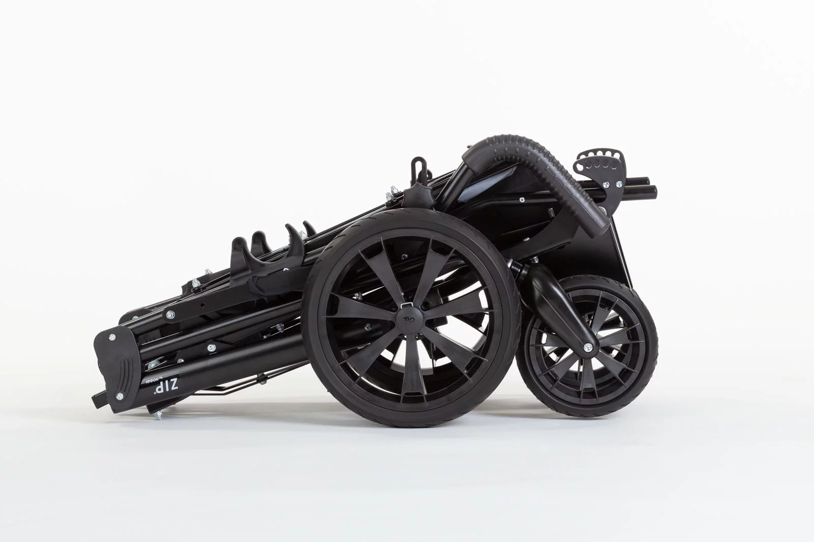 Jedną z największych zalet HOGGI Zip jest składany stelaż w formie parasolki, który pozwala na błyskawiczne złożenie i rozłożenie wózka. Dzięki temu wózek zajmuje bardzo mało miejsca po złożeniu i mieści się w większości bagażników samochodowych. Wymiary po złożeniu wynoszą tylko 78 x 36 x 39 cm (91 x 44 x 40 cm w rozmiarze 2). Składanie i rozkładanie wózka jest proste i szybkie, a nie wymaga demontażu żadnych elementów.