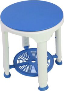 Taboret prysznicowy okrągły z obrotowym siedziskiem oraz półeczką na przybory do mycia jest sprzętem pomocniczym ułatwiającym użytkownikowi wykonywanie czynności sanitarnych. Zalecany jest osobom o obniżonej sprawności ruchowej, która uniemożliwia bądź utrudnia samodzielne wykonywanie czynności życia codziennego. Taboret polecany jest do stosowania pod prysznicem, w wannie, łazience i innych wilgotnych pomieszczeniach, w warunkach domowych i szpitalnych.