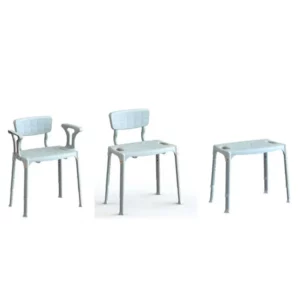 Pozwala na zwiększenie bezpieczeństwa oraz pozycję siedzącą w czasie brania prysznica. Specjalny rozstaw nóg gwarantuje większą stabilność i bezpieczeństwo w trakcie użytkowania. Wyposażone w antypoślizgowe nasadki, które zabezpieczają nogi stołka przed ślizganiem się po mokrej powierzchni.