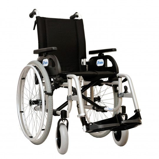 Wózek inwalidzki Delfin jest wykonany z lekkiego aluminium i posiada funkcję szybkiego demontażu kół tylnych, a także składaną konstrukcję krzyżakową, co ułatwia jego przenoszenie i transport. Wózek jest wyposażony w demontowane podłokietniki, które można regulować na wysokość i unosić, zapewniając użytkownikowi większą wygodę. Dodatkowo, podnóżki są odchylane, zdejmowane i regulowane na długość, umożliwiając dostosowanie ich do indywidualnych potrzeb.