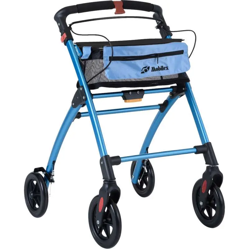 Podpórka czterokołowa od Mobilex to przystępna pomoc mobilna w każdej drodze. Jej stabilna podstawa to cztery koła gumowe zaopatrzone w zaciski hamulcowe w razie potrzeby postoju. Firma pomyślała również o potrzebujących komfortu w czasie aktywności towarzyszącym podróży, dlatego miłym dodatkiem z pewnością okaże się pojemna torba nadająca się do pakowania codziennych zakupów lub asortymentów godnych tego wspaniałego transportu.