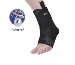 Orteza stawu skokowego ze wzmocnieniami bocznymi. Wykonana z innowacyjnego, wytrzymałego, lekkiego i bardzo przewiewnego materiału FLEXTRA o specjalnym składzie gwarantującym komfort użytkowania.