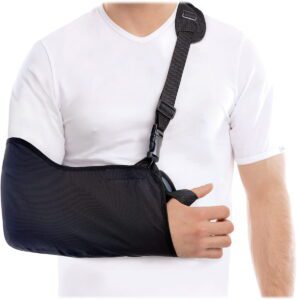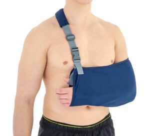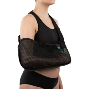 Orteza AM-SOB-04 zapewnia unieruchomienie oraz podtrzymanie kończyny górnej. Kształt wyrobu oraz podział rozmiarowy umożliwiają idealne dopasowanie do ciała pacjenta. Wyrób posiada funkcję obustronnego noszenia, co pozwala na stosowanie go zarówno na prawe jak i lewe ramię. Układ podtrzymywania kończyny jest mocowany za pomocą regulowanej taśmy naramiennej, umożliwiającej precyzyjne ustawienie kończyny we właściwej wysokości. Szeroki pas podtrzymujący zapewnia równomierne rozłożenie ciężaru na całej długości pleców.