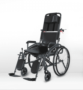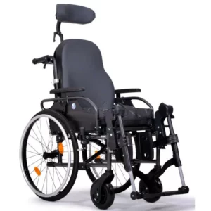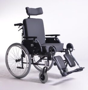 Wózek specjalny stabilizujący plecy i głowy z odchylanym oparciem do 90° . Wykonany z aluminium . Regulacji kąta oparcia do poziomu dokonuje się w sposób płynny przy pomocy sprężyn hydraulicznych. Wózek wyposażony standardowo w przedłużenie oparcia oraz podnóżki z podparciem pod łydki z regulacją kąta nachylenia. Wózek dedykowany dla osób z niestabilnym tułowiem , szczególnie dla pacjentów z paraliżem lub niedowładem czterokończynowym , trzykończynowym, dla osób po udarach. Możliwość doposażenia wózka w wiele opcji dodatkowych pozwala dopasować go do wielu pacjentów nawet tych najbardziej wymagających.