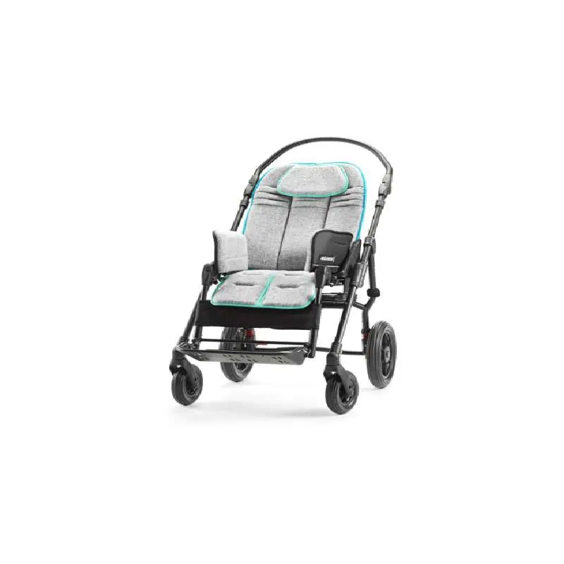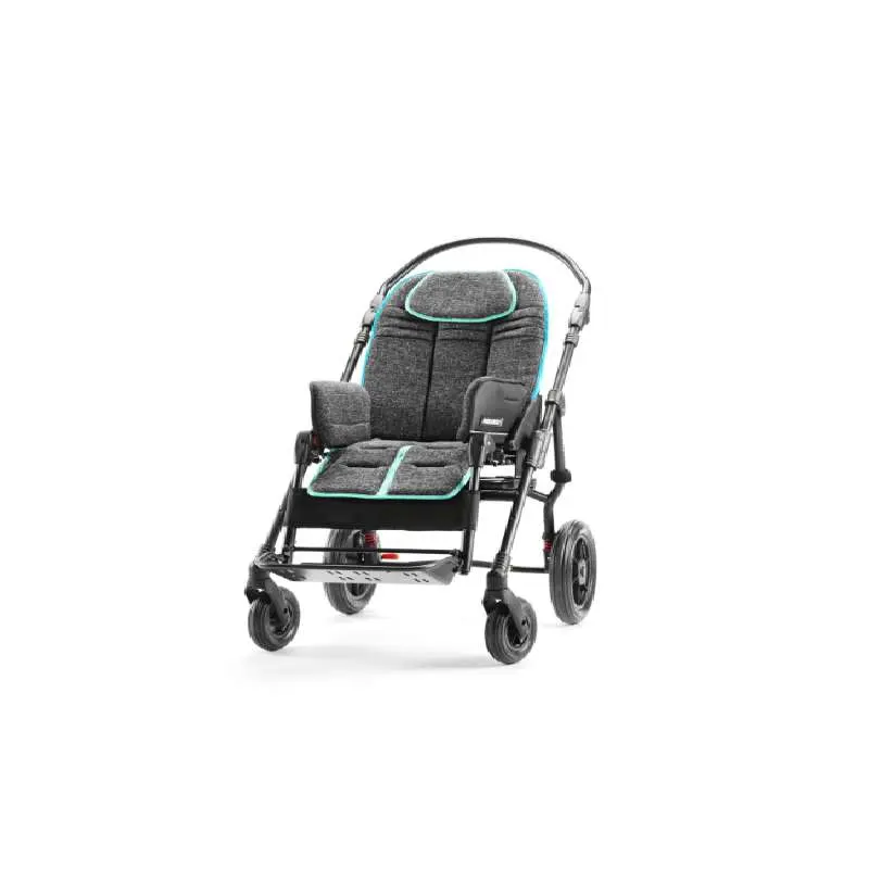 Wózek spacerowy z możliwością odwrócenia siedziska w stronę osoby prowadzącej wózek (dla rozmiaru 1-2). Przeznaczony dla dzieci z MPD, przepukliną oponowo-rdzeniową, chorobami mięśni.