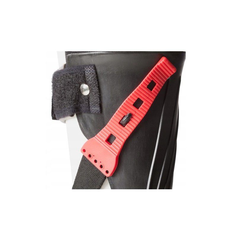 Specjalne ustawienie pasków Velcro, wraz z dodatkową elastyczną taśmą, korygują ustawienie stopy w pronacji, nawet przy wzmożonym napięciu niższych partii mięśni nóg.