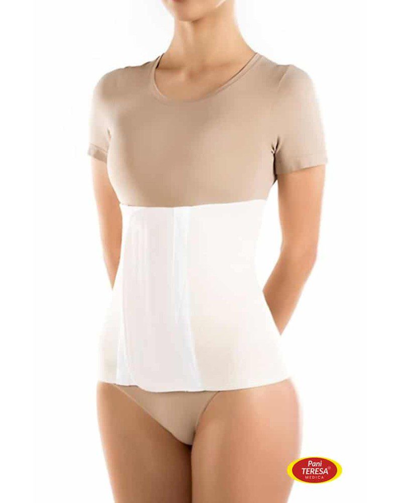 Uniwersalny pas brzuszny „30” z zapięciem na rzep Pani Teresa to wyrób medyczny wielokrotnego użytku. Pas brzuszny Pani Teresa ma wysokość 30 cm i jest idealny przy wsparciu mięśni brzucha w czasie regeneracji. Działa wspomagająco w trakcie podnoszenia się i poruszanie po operacjach jamy brzusznej, zmniejsza ryzyko powstawania przepuklin pooperacyjnych, oraz powiększanie się istniejących już przepuklin brzusznych. Pas należy chronić przed działaniem wysokich temperatur i bezpośrednim nasłonecznieniem.