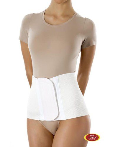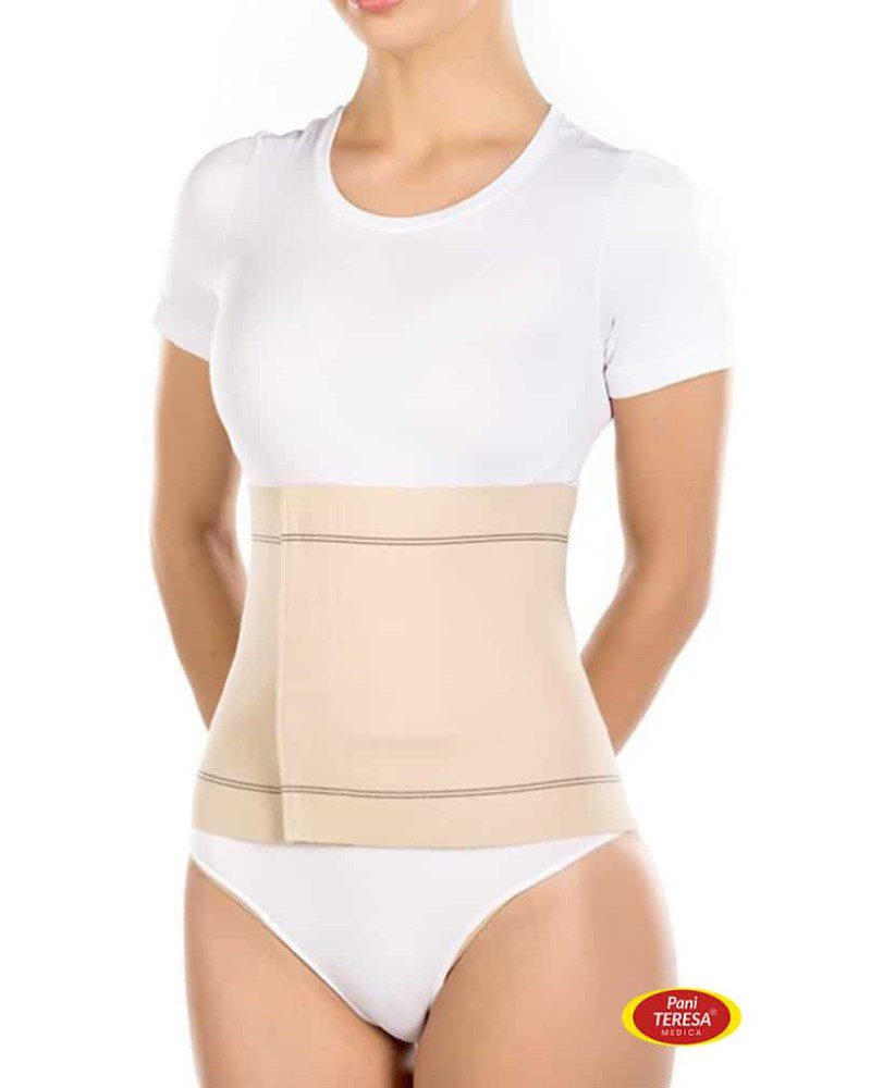 Uniwersalny pas brzuszny „28” z zapięciem na dyskretny, zakryty rzep Pani Teresa to wyrób medyczny wielokrotnego użytku. Idealny przy wsparciu mięśni brzucha w czasie regeneracji po operacjach jamy brzusznej. Pooperacyjny pas brzuszny Pani Teresa działa wspomagająco w trakcie podnoszenia się i poruszanie po operacjach jamy brzusznej, zmniejsza ryzyko powstawania przepuklin pooperacyjnych, oraz powiększanie się istniejących już przepuklin brzusznych.
