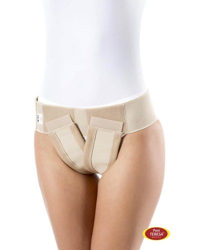 Obustronny pas pachwinowy Pani Teresa PT 0108 jest wskazany dla osób w niewielkimi przepuklinami lub pooperacyjnie przy zapobieganiu nawrotom.