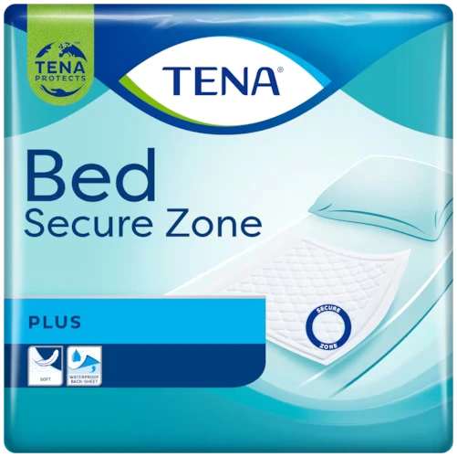 Miękki podkład TENA Bed Secure Zone Plus stanowi niezawodne zabezpieczenie łóżka w nietrzymaniu moczu. W przypadku doświadczania mimowolnego oddawania moczu lub moczenia nocnego chroni materace, krzesła, sofy i wózki inwalidzkie. Ich powierzchnia pozostaje sucha dzięki wsadowi chłonnemu oraz wodoodpornej warstwie od spodu, zapewniającej zabezpieczenie przed przeciekaniem. Układ strefy Secure Zone sprawia, że ciecz jest wchłaniana w jej poszczególne sekcje, a następnie zamykana wewnątrz superchłonnych mikrogranulek. Dostępna w rozmiarze dla dorosłych podkład na łóżko został przebadany dermatologicznie pod kątem zapewniania uczucia komfortu w pozycji siedzącej lub leżącej. Podkłady TENA Bed Secure Zone Plus są dostępne w gamie różnych rozmiarów dopasowanych do rozmaitych potrzeb.