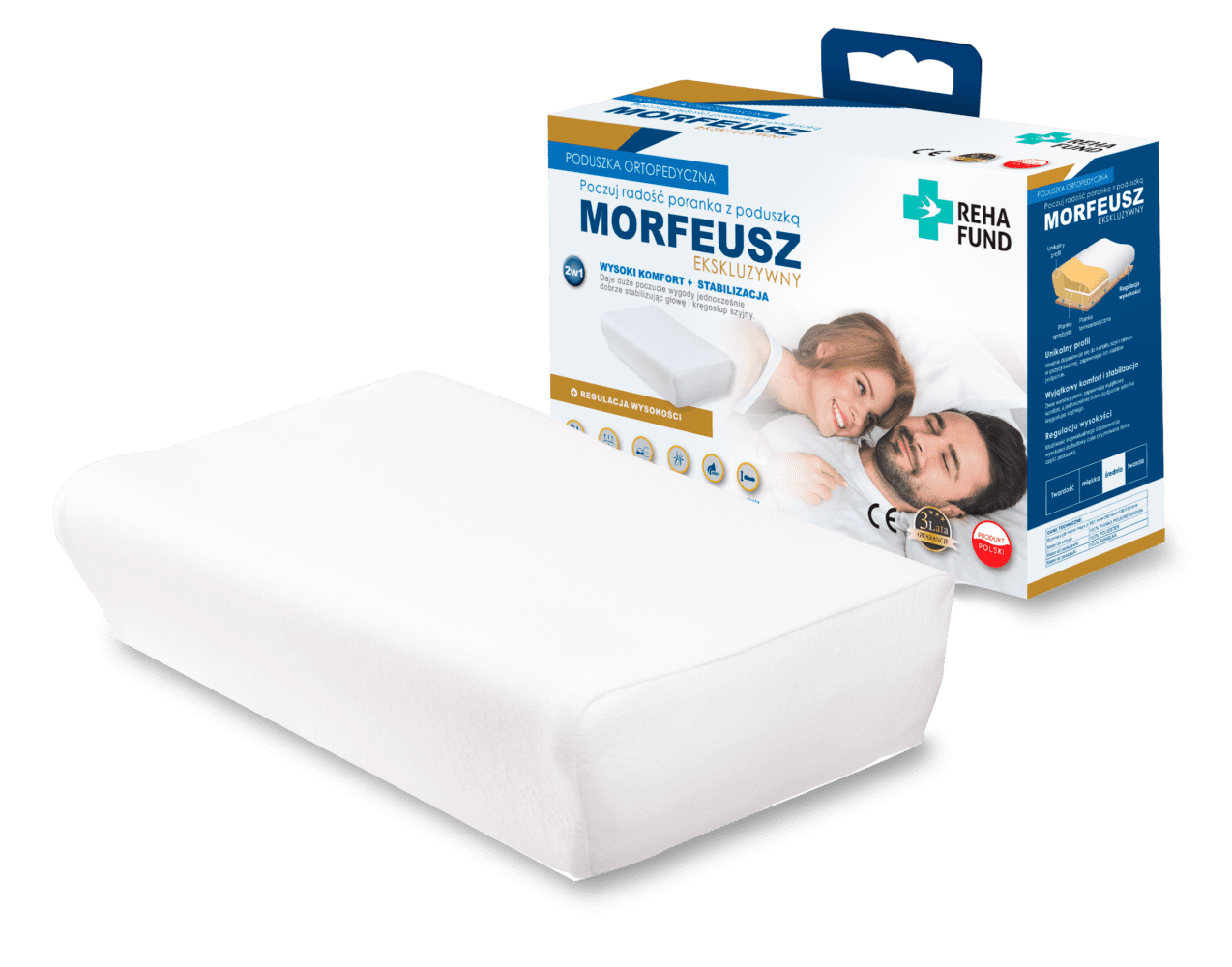 poduszka ortopedyczna z połączenia pianki termoelastycznej i pianki sprężystej, przeznaczona do podparcia i prawidłowej pozycji odcinka szyjnego kręgosłupa oraz głowy podczas snu.