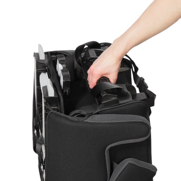 Dzięki torbie transportowej można złożony fotelik transportować oraz przenosić.