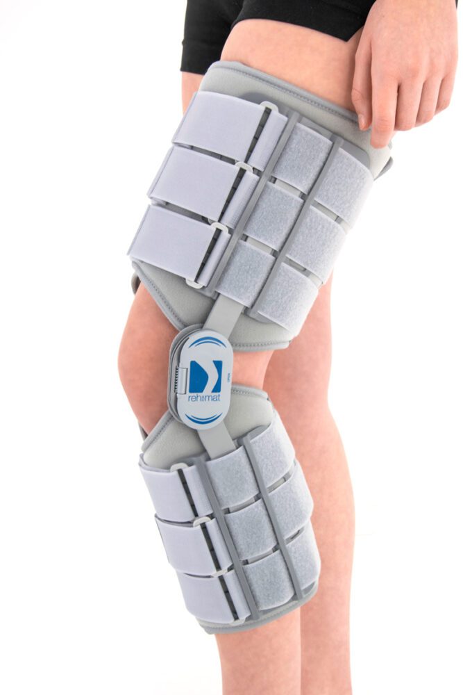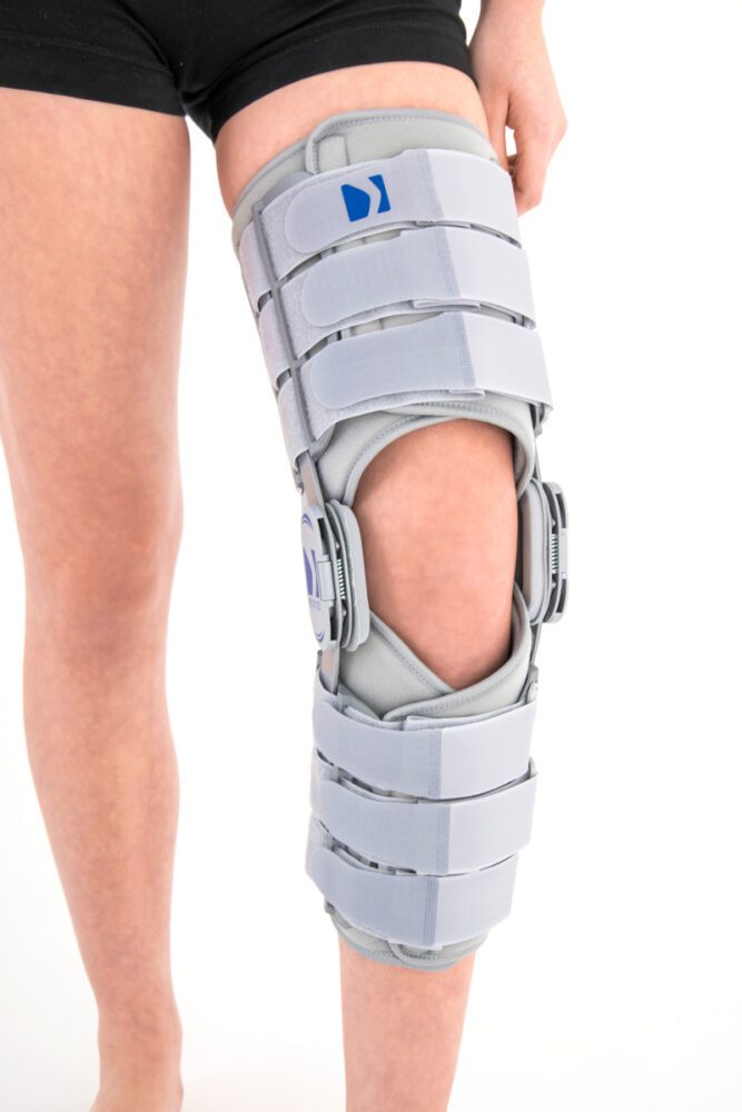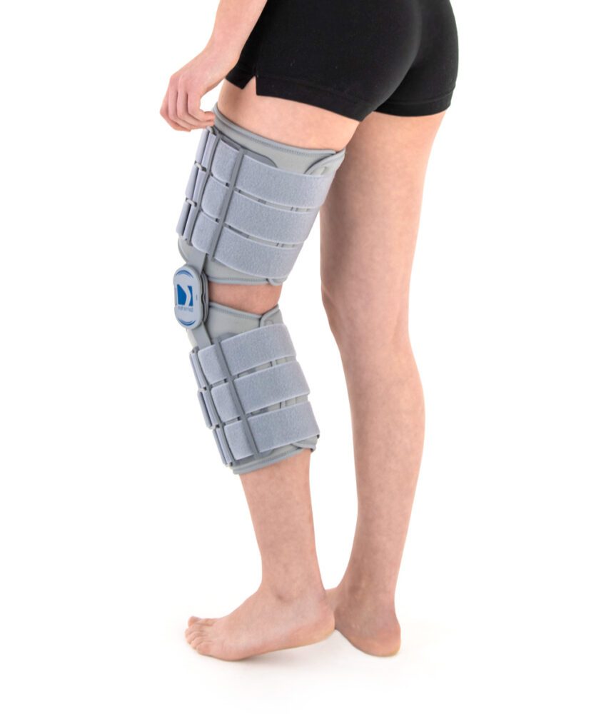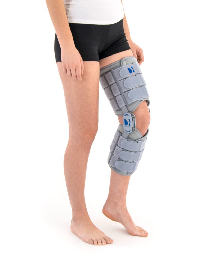 ORTEZA KOŃCZYNY DOLNEJ AM-KD-AM/2R to produkt stosowany w celu ograniczenia ruchomości stawu kolanowego po zabiegach operacyjnych, leczeniu i doleczaniu urazów stawu kolanowego oraz jako unieruchomienie w przypadku zakwalifikowania pacjenta do operacji. Wszelkie schorzenia powodujące deformacje w obrębie kończyny dolnej wykluczają stosowanie ortezy AM-KD-AM/2R ze względu na ryzyko jej trwałego uszkodzenia. W celu stabilizacji kończyny w przypadku deformacji i zmian zwyrodnieniowych rekomenduje się stosowanie profesjonalnych ortez stalowych, wykonywanych w specjalistycznych zakładach ortopedycznych.