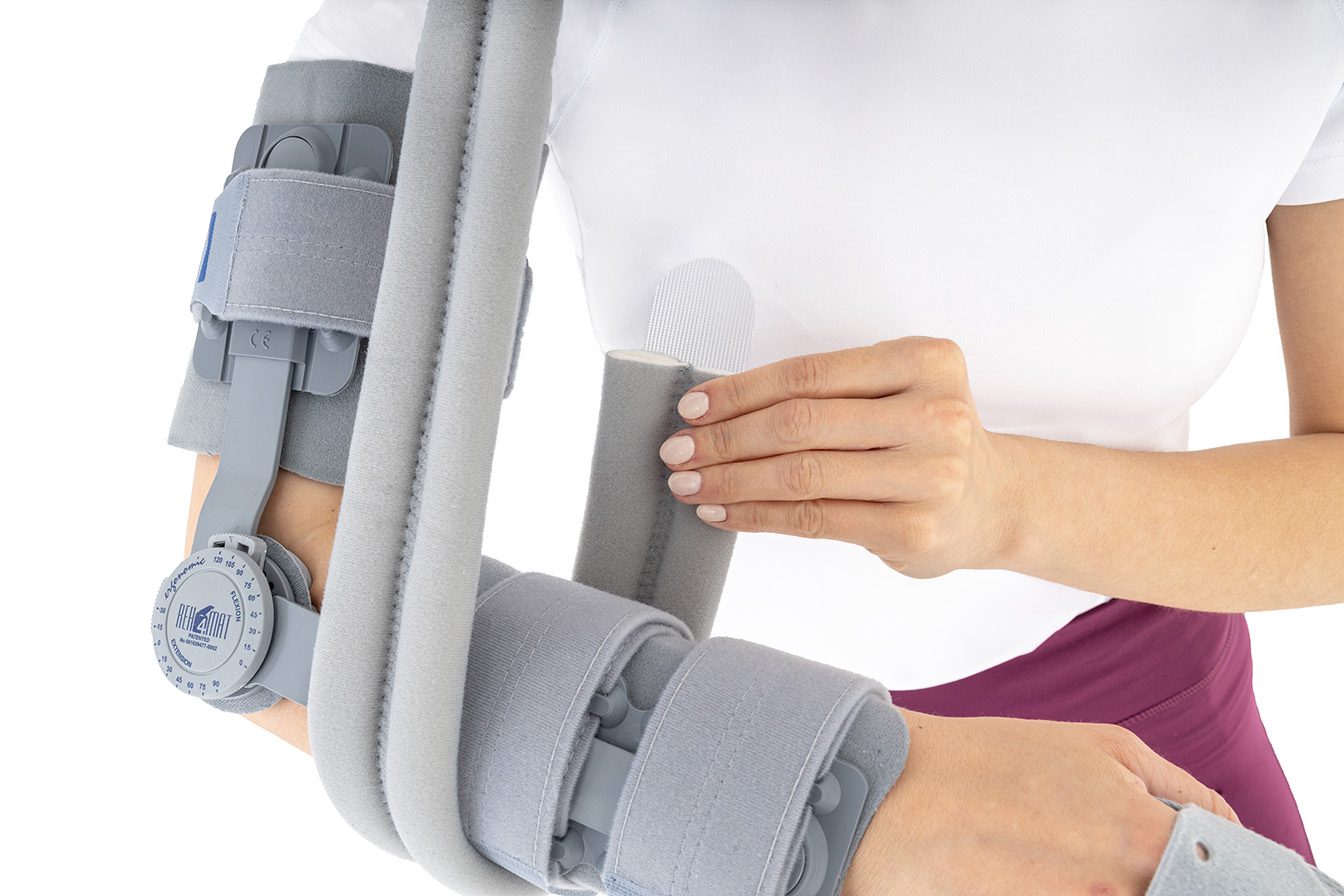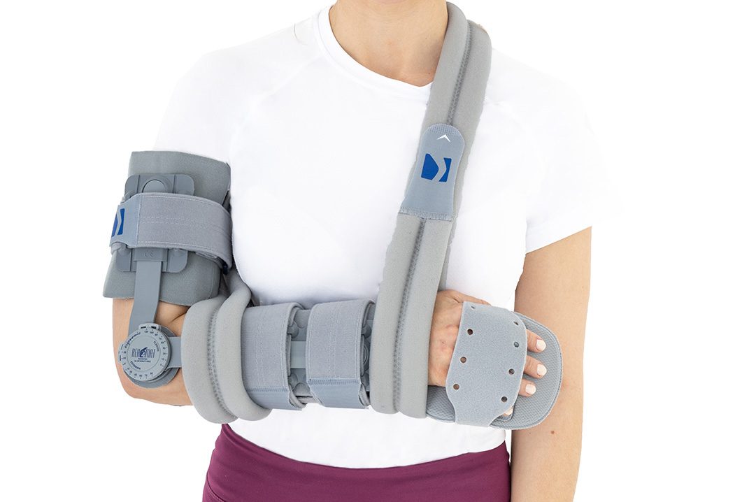 Aparat AM-KG-AM/1RE zabezpiecza całą kończynę górną oraz stawy między-paliczkowe, śródręczno-paliczkowe, staw nadgarstkowy i łokciowy.