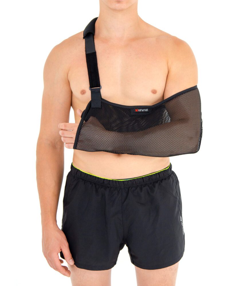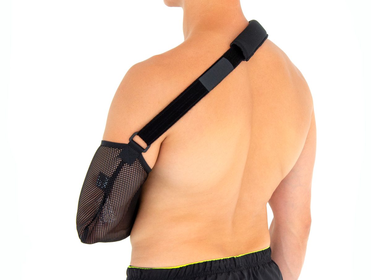Orteza AM-SOB-03 zapewnia unieruchomienie oraz podtrzymanie kończyny górnej. Kształt wyrobu oraz podział rozmiarowy umożliwiają idealne dopasowanie do ciała pacjenta. Wyrób posiada funkcję obustronnego noszenia, co pozwala na stosowanie go zarówno na prawe jak i lewe ramię. Układ podtrzymywania kończyny jest mocowany za pomocą regulowanej taśmy naramiennej, umożliwiającej precyzyjne ustawienie kończyny we właściwej wysokości. Szeroki pas podtrzymujący zapewnia równomierne rozłożenie ciężaru na całej długości pleców.
