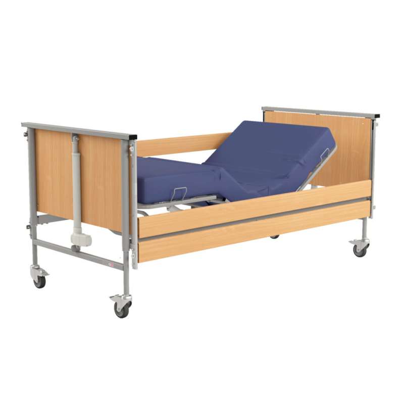 Łóżko rehabilitacyjne, sterowane elektrycznie, przeznaczone dla osób starszych lub trwale leżących, niepełnosprawnych lub pozostających w domu, mających problem z samodzielnym wstawaniem bądź ułożeniem się na łóżku. Leże posiada cztery obszary sterowane elektrycznie za pomocą pilota - ruchome obszary głowy i tułowia, górnego oraz dolnego odcinka nóg oraz nieruchomego obszaru dolnej części kręgosłupa.