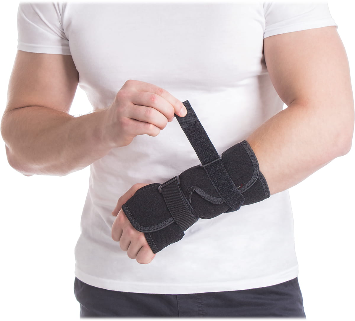 Orteza ręki i przedramienia zwiększa ukrwienie uszkodzonych tkanek, redukuje obrzęk i pomaga usunąć stan zapalny. Dzięki mikromasażowi i ociepleniu pozwala uśmierzyć ból. Szyna dłoniowa, którą zaprojektowano z myślą o anatomicznych kształtach, oraz górne stalki świetnie stabilizują przedramię, nadgarstek, a także staw promieniowo-nadgarstkowy. Ortezę można swobodnie dopasować do wielkości ręki za pomocą regulowanego zapięcia. Wyprodukowana z pianki i bawełnianego materiału. Usztywnienie ortezy można zmniejszyć lub zwiększyć dzięki aluminiowym, wyjmowanym stalkom.