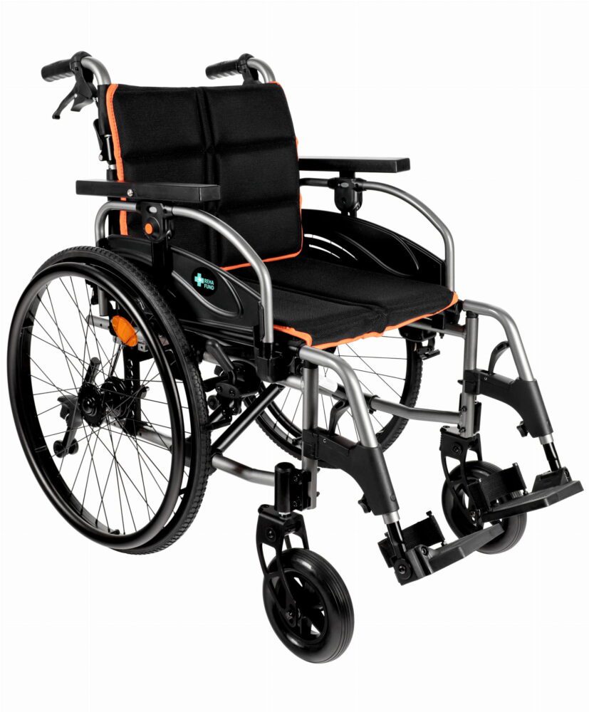 Wózek posiada wiele praktycznych cech, takich jak regulacja środka ciężkości, składane oparcie, regulowane podłokietniki, mocne blokady kół, hamulce bębnowe dla opiekuna, dźwignia ułatwiająca pokonywanie przeszkód, koła antywywracające, szybkozłącza w tylnych kołach, odchylane boczki, paski na stopy, ergonomiczne rączki dla opiekuna, dodatkowe wyposażenie w postaci zagłówka i unoszonych podnóżków, a także wiele innych funkcji.