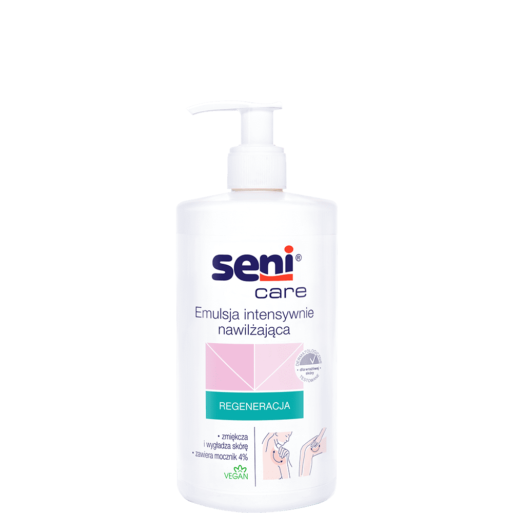Jeśli skóra jest skrajnie przesuszona, warto używać do jej regeneracji produktów z mocznikiem, który intensywnie nawilża, skutecznie zmiękcza wysuszony naskórek, regeneruje, wygładza i ujędrnia. Emulsja intensywnie nawilżająca Seni Care ma lekką konsystencję, łatwo się rozprowadza i wchłania, a regularnie stosowana poprawia kondycję skóry chroniąc ją przed szkodliwym działaniem czynników zewnętrznych.