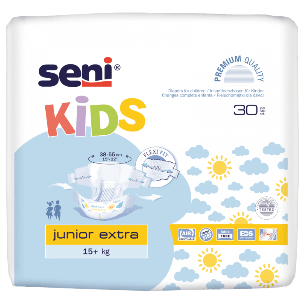 Seni Kids to pieluchomajtki dla dzieci z inkontynencją, które wyrosły już z tradycyjnych dziecięcych pieluszek, a wciąż potrzebują pewnego i komfortowego zabezpieczenia. Seni Kids zapewniają: