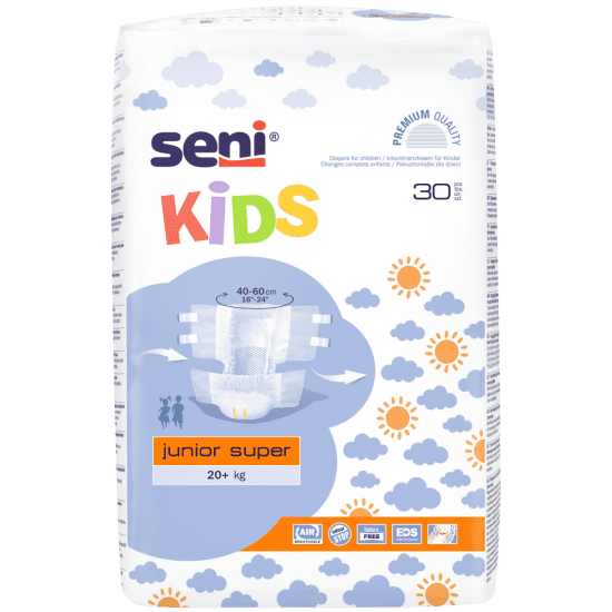 Seni Kids to pieluchomajtki dla dzieci z inkontynencją, które wyrosły już z tradycyjnych dziecięcych pieluszek, a wciąż potrzebują pewnego i komfortowego zabezpieczenia. Seni Kids zapewniają: