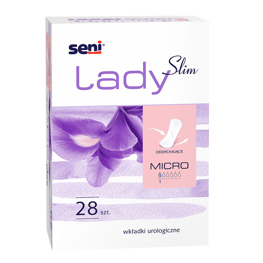 Oddychające, anatomiczne wkładki urologiczne dla kobiet Seni Lady Slim Micro stanowią doskonałe zabezpieczenie przy kropelkowym nietrzymaniu moczu oraz zapewniają: