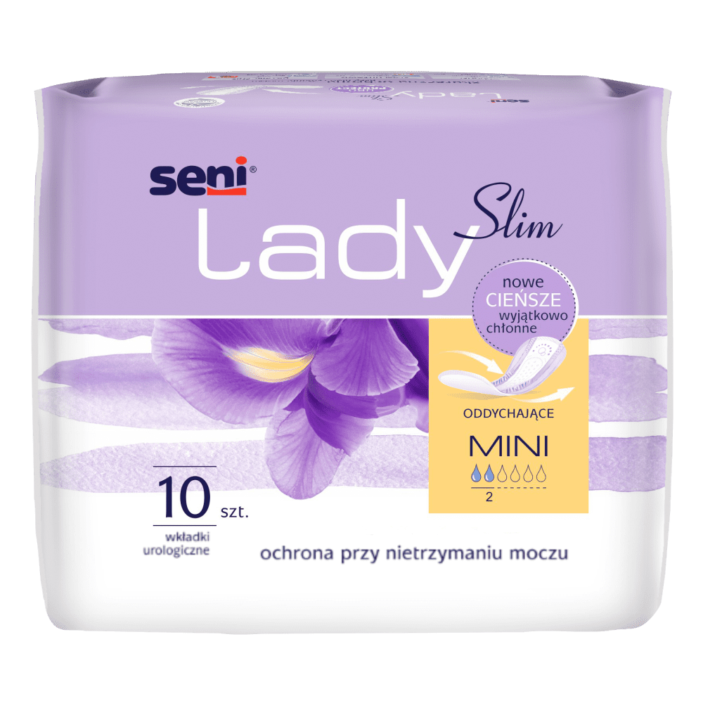 Oddychające, anatomiczne wkładki urologiczne dla kobiet Seni Lady Slim Mini stanowią doskonałe zabezpieczenie przy lekkim nietrzymaniu moczu oraz zapewniają: