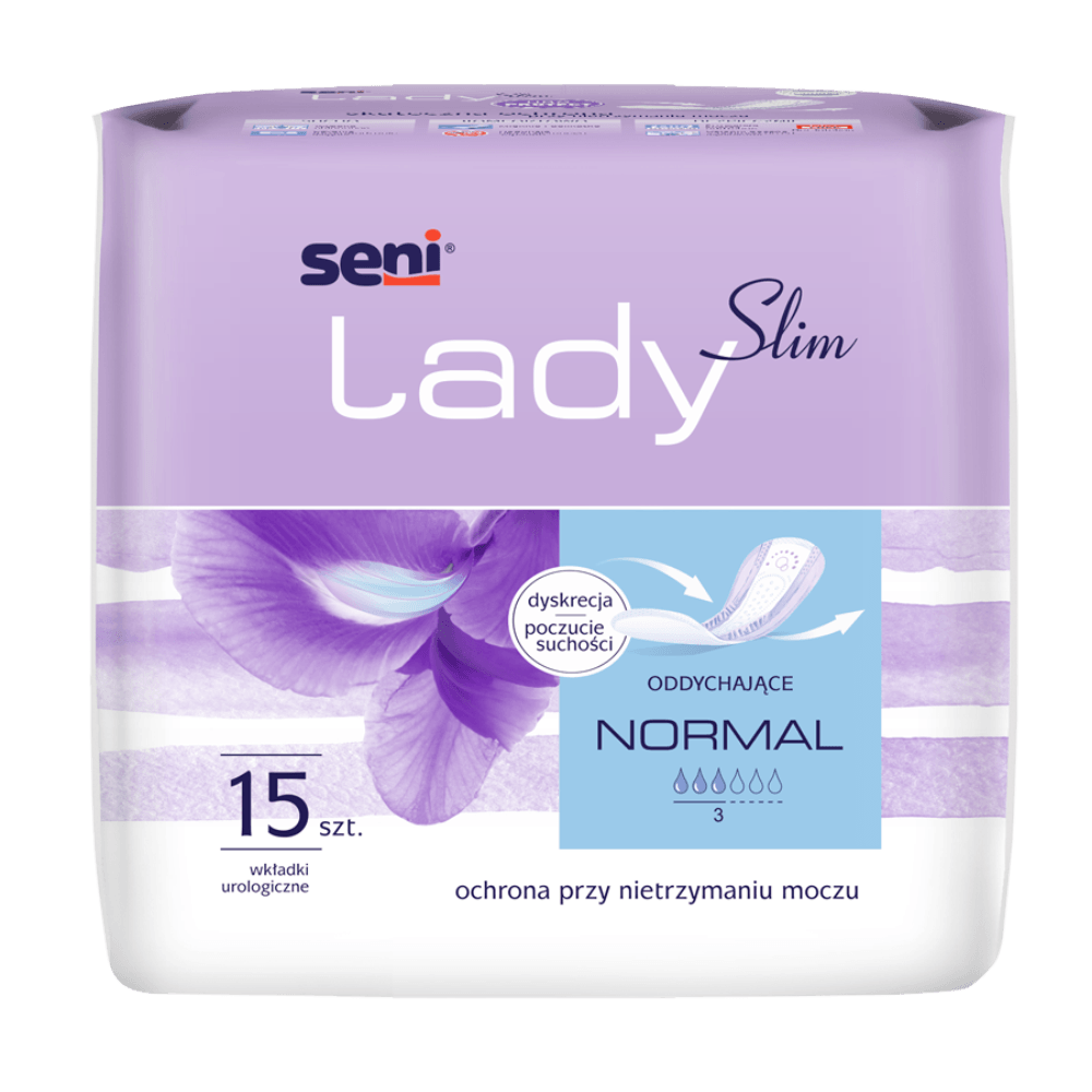 Oddychające, anatomiczne wkładki urologiczne dla kobiet Seni Lady Slim Normal stanowią doskonałe zabezpieczenie przy lekkim nietrzymaniu moczu oraz zapewniają: