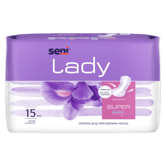 Oddychające, anatomiczne wkładki urologiczne dla kobiet Seni Lady Super stanowią doskonałe zabezpieczenie przy średnim nietrzymaniu moczu oraz zapewniają:
