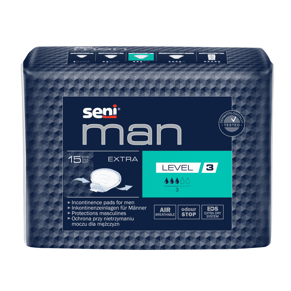 Oddychające wkładki urologiczne Seni Man Normal Level 3 to skuteczna ochrona dla mężczyzn z lekkim i średnim nietrzymaniem moczu.
