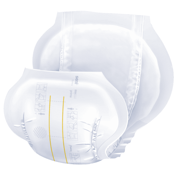 Oddychające pieluchy anatomiczne San Seni Prima to idealne rozwiązanie dla osób, które mają problem z dopasowaniem odpowiedniego rozmiaru produktu chłonnego. Nie posiadają paneli bocznych i rzepów mocujących - są mocowane za pomocą majtek wielokrotnego użytku. Właściwy produkt jest dobierany w zależności od wymaganej chłonności, a nie kształtu ciała użytkownika. Mogą być również stosowane przy nietrzymaniu kału.