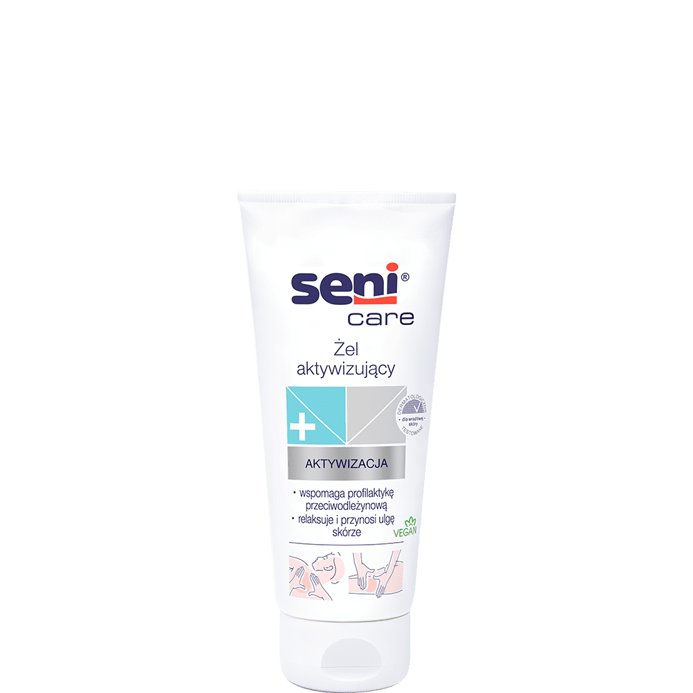 U osób o ograniczonej mobilności, na skutek długotrwałego ucisku mogą się pojawić zaburzenia krążenia, prowadzące do powstania odparzeń lub odleżyn. Aby zapobiegać ich powstawaniu, należy regularnie masować ciało, szczególnie w najbardziej narażonych na ucisk miejscach. Żel aktywizujący Seni Care z guaraną i kofeiną, regularnie stosowany wspomaga profilaktykę przeciwodleżynową chroniąc przed podrażnieniami, relaksuje i przynosi ulgę. Receptura wzbogacona jest o alantoinę i biokompleks lniany o działaniu kojąco-łagodzącym.