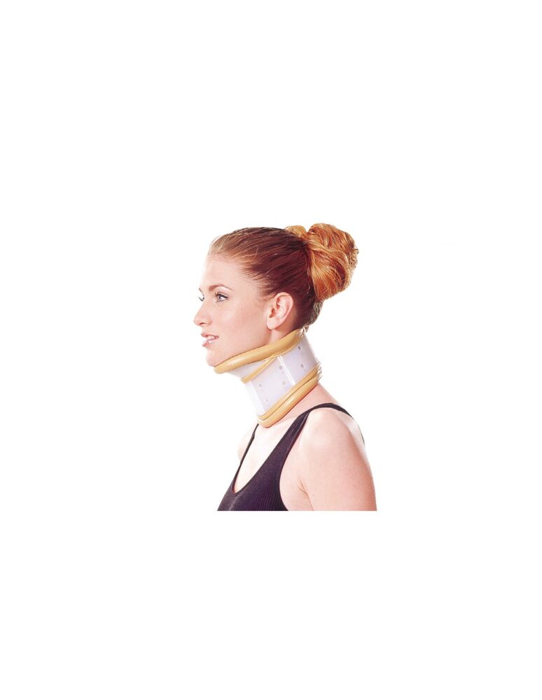 Kołnierz ortopedyczny sztywny z podbródkiem wykonany z tworzywa PCV wykończonego specjalną pianką PE dla poprawienia komfortu użytkowania. Posiada regulację wysokości oraz długości.