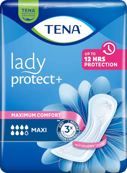Szukasz podpaski, na której możesz polegać przy większym nietrzymaniu moczu? TENA Lady Protect+ Maxi to świetna podpaska chłonna na co dzień dla kobiet, które zmagają się z nietrzymaniem moczu w natężonym stopniu. Tej podpaski można używać jako skutecznej ochrony po porodzie lub operacji. Strefa InstaDRY™ w ciągu kilku sekund wchłania płyn, a niezwykle chłonny wkład zamyka go głęboko wewnątrz podpaski, zapewniając do 12 godzin ochrony. Możesz czuć się spokojnie i bezpiecznie wiedząc, że te podpaski zapewnią Ci maksymalny poziom ochrony przez cały dzień. Skuteczność produktu pozwala Ci żyć bez ograniczeń. Wykonany z miękkich, oddychających materiałów, dopasowany do budowy ciała kształt zapewnia maksymalny poziom wygody i bezpieczeństwa podczas wykonywania codziennych czynności.