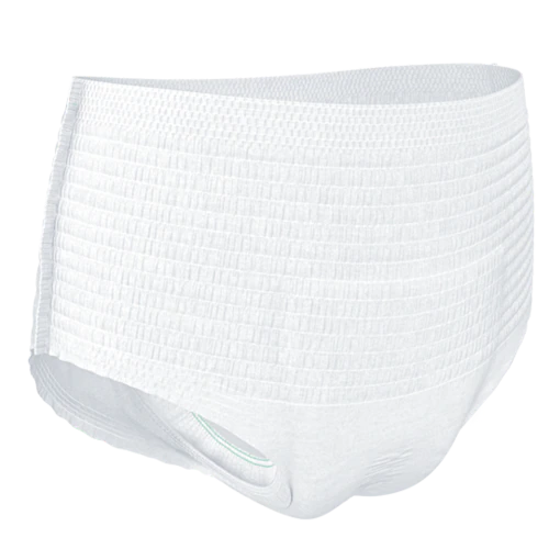 TENA Pants Super to miękkie i wygodne majtki chłonne na nietrzymanie moczu dla kobiet i mężczyzn. Idealnie sprawdzą się zarówno w ciągu dnia, jak i w nocy. W przeciwieństwie do zwykłych pieluch dla dorosłych, majtki chłonne TENA ProSkin Pants wyposażone są w zaawansowane rozwiązania ograniczające wilgoć, by zapewnić uczucie suchości, zabezpieczenie przed przeciekaniem i kontrolę zapachu. Technologia FeelDry Advanced™, zapewniająca całkowitą ochronę, szybko i skutecznie odciąga płyn z powierzchni, natomiast superchłonny wkład zamyka nawet duże ilości moczu wewnątrz, pomagając utrzymać naturalne zdrowie skóry. Te jednorazowe majtki na nietrzymanie moczu wykonane są z oddychających materiałów przypominających w dotyku tkaninę i charakteryzują się doskonałą chłonnością, a fakt, że są wsuwane niczym zwykła bielizna sprawia, że produkt ten zachęca do prowadzenia niezależnego, aktywnego życia.