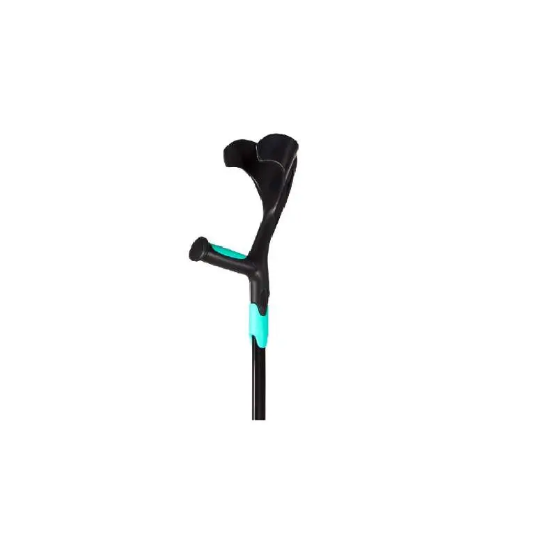 Kula inwalidzka łokciowa klasy Premium wykonana z aluminiowego trzonu o przekroju elipsy oraz ergonomicznej rękojeści wykonanej w technologii bi-material z miękkim wykończeniem części chwytnej. Trzon z skokową regulacją długości zakończony został wysokiej jakości gumową nasadką. Kula posiada gumowe wykończenia przy trzonie i obejmie, dzięki czemu umożliwia bezpieczne oparcie, np. o ścianę.