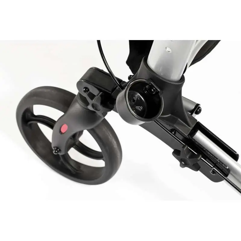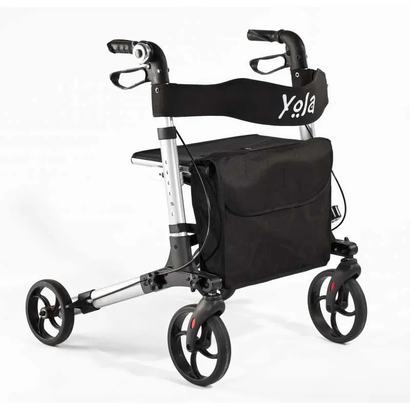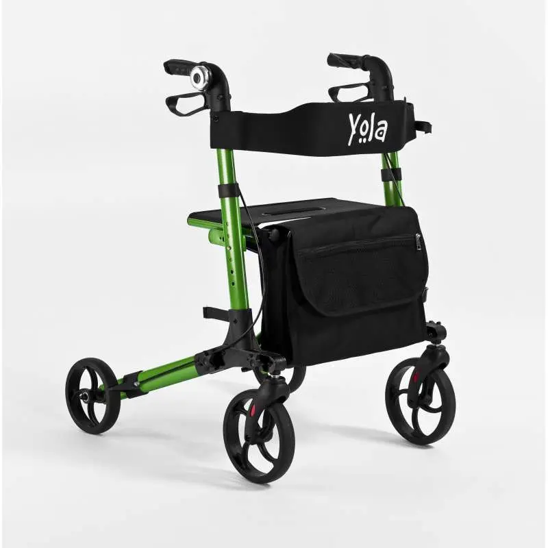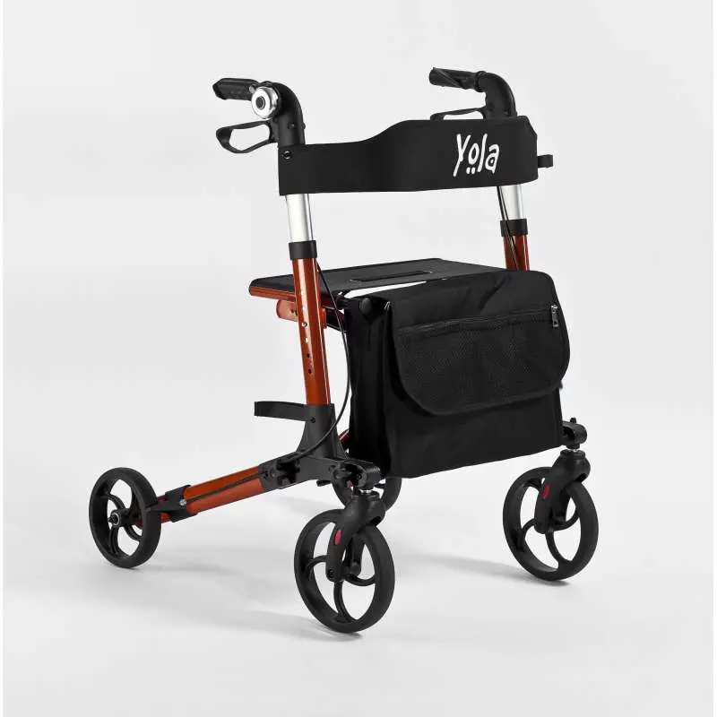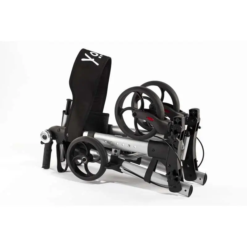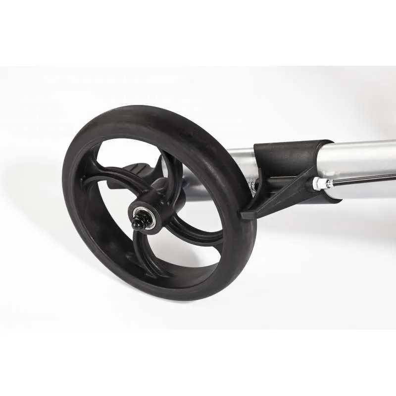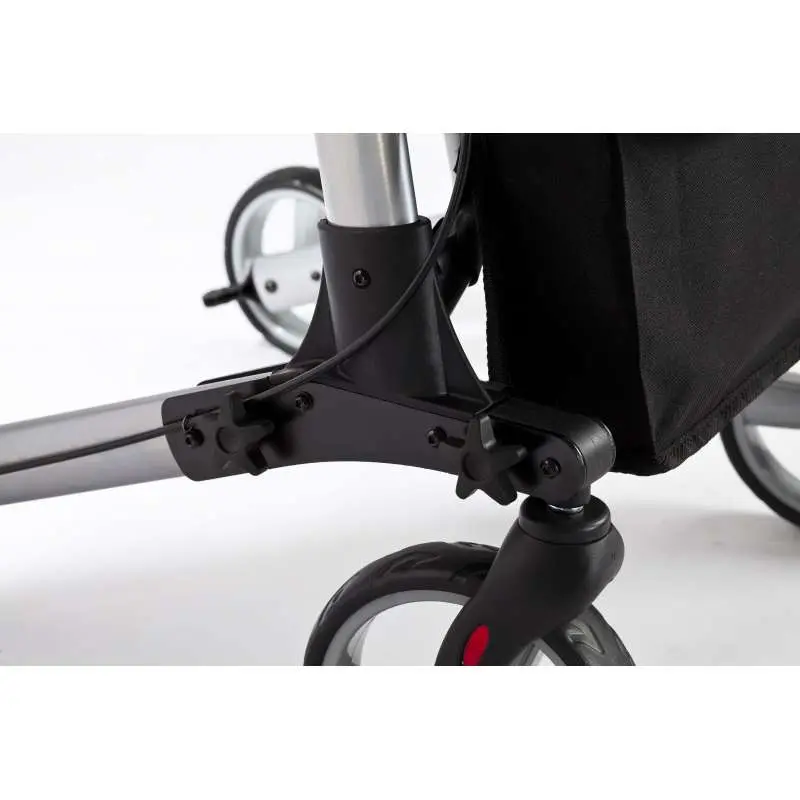 Podpórka aluminiowa została pomalowana farbą o metalicznym połysku oraz wyposażona jest w hamulce z zaciskiem postojowym, wytrzymałe siedzisko z oparciem oraz podręczną torbę. Podpórka posiada koła o wąskim przekroju i średnicy „8”. Wykonane zostały z materiału o podwyższonej wytrzymałości na ścieranie.
