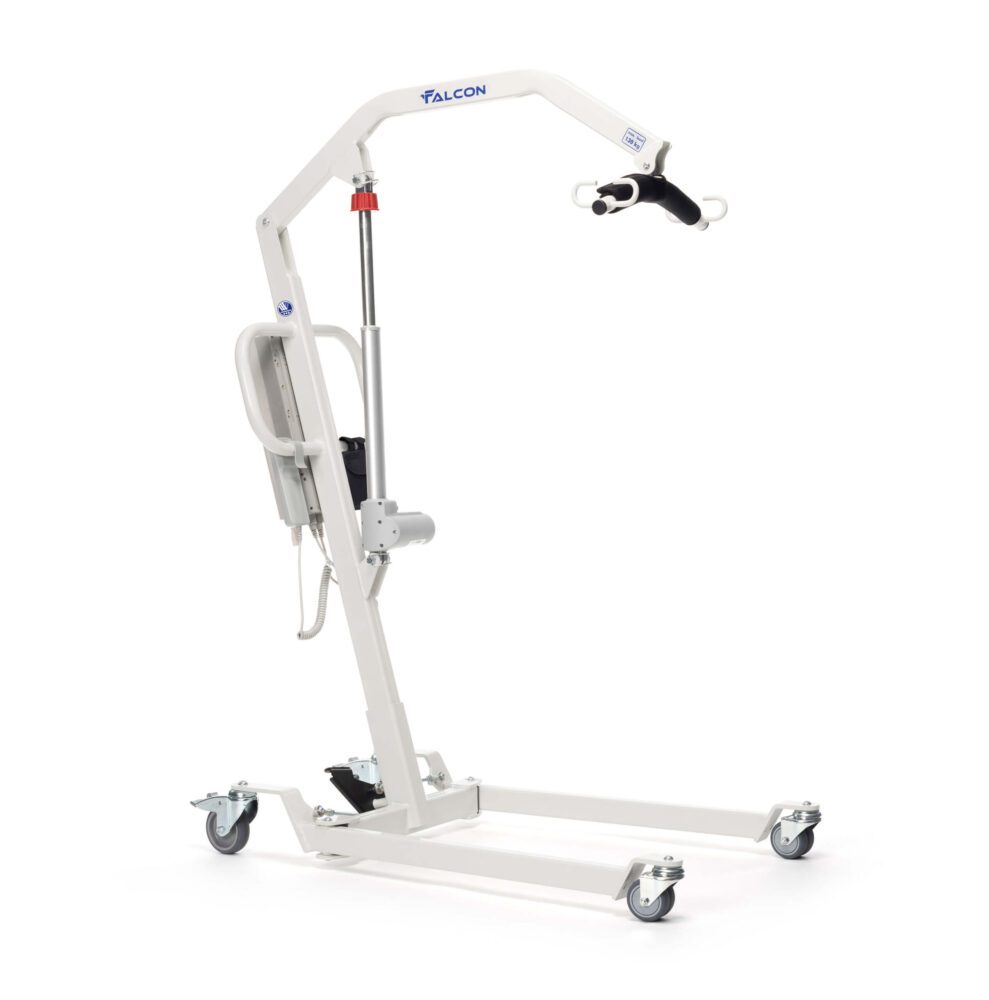 Podnośniki do łatwego transportu i podnoszenia pacjentów. FALCON przeznaczony jest dla pacjentów o wadze do 130 kg . Podnośnik działa automatycznie na pilota , gwarantują płynne i bezproblemowe działanie