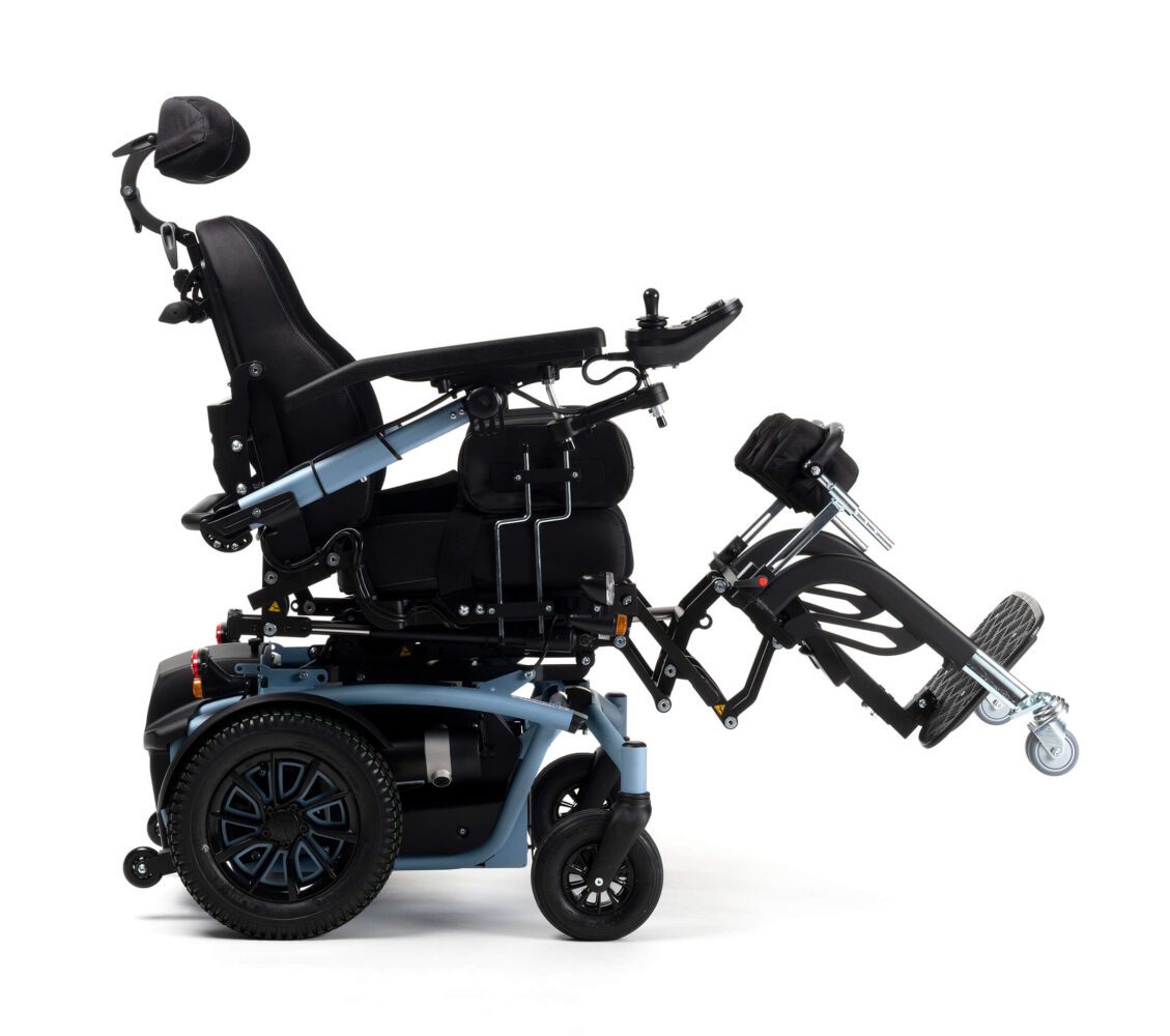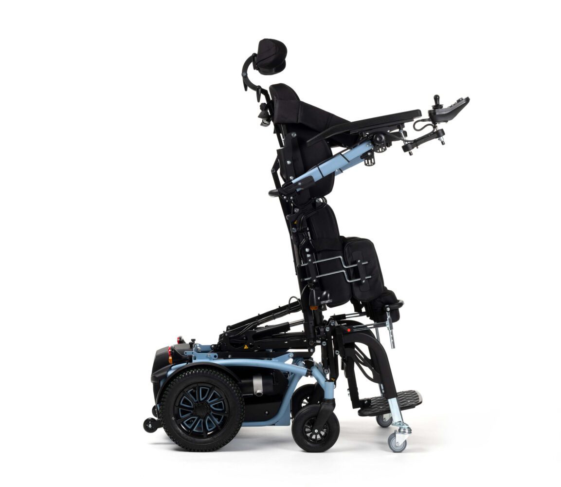 Wózek z funkcją pionizacji. Trwała i stabilna konstrukcja wózka terenowo-pokojowego, jakim jest FOREST 3 SU, pozwala na wyposażenie go w opcję pionizacji, która płynnie pionizuje użytkownika. Szeroki pas piersiowy plus stabilizacja kolan umożliwia stabilne trwanie w pozycji wyprostowanej, dla których to podstawowe wyposażenie nie jest wystarczające oferujemy również zagłówek do stabilizacji głowy jak również peloty udowe do ustabilizowania miednicy. Dodatkowym atutem jest możliwość w standardzie ustawiania pozycji leżącej. Przy rozłożeniu do pozycji leżącej podłokietniki obniżają się poniżej linii siedziska co ułatwia transfer na łóżko i z łóżka na wózek.