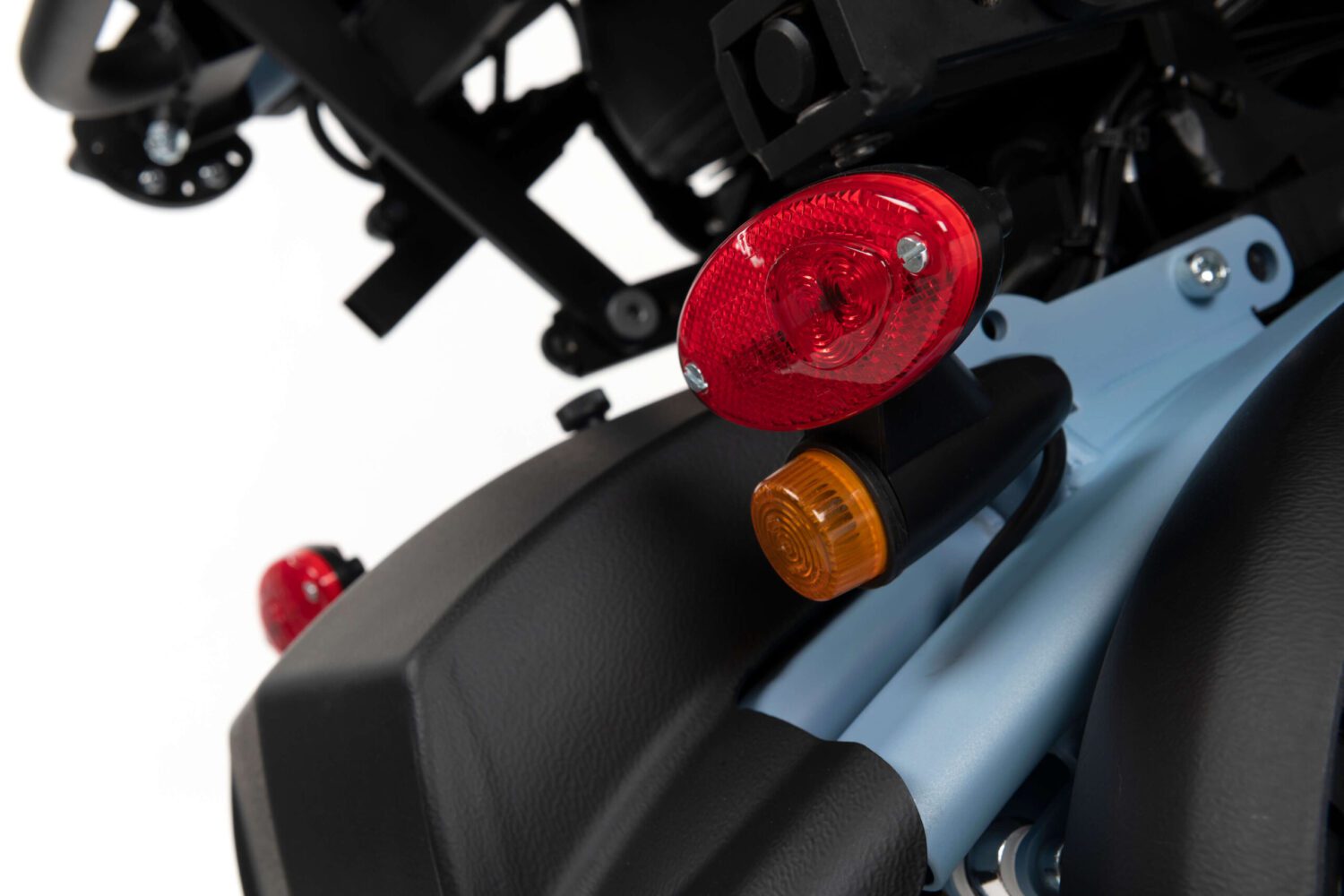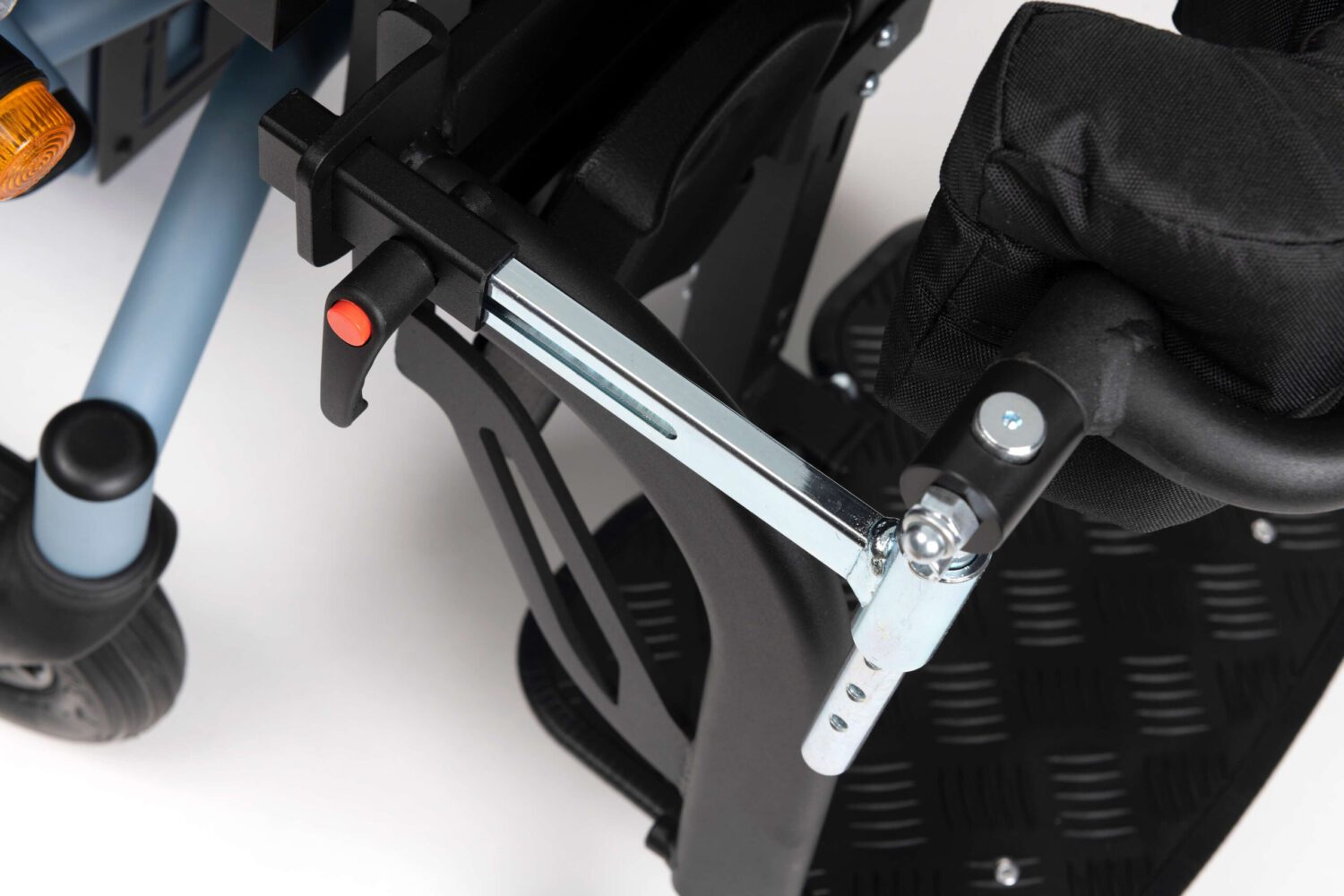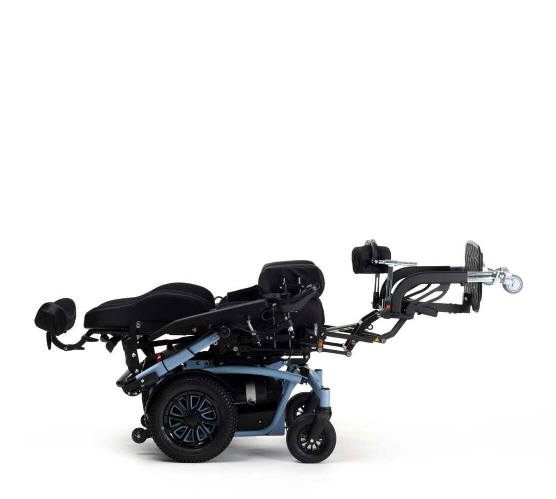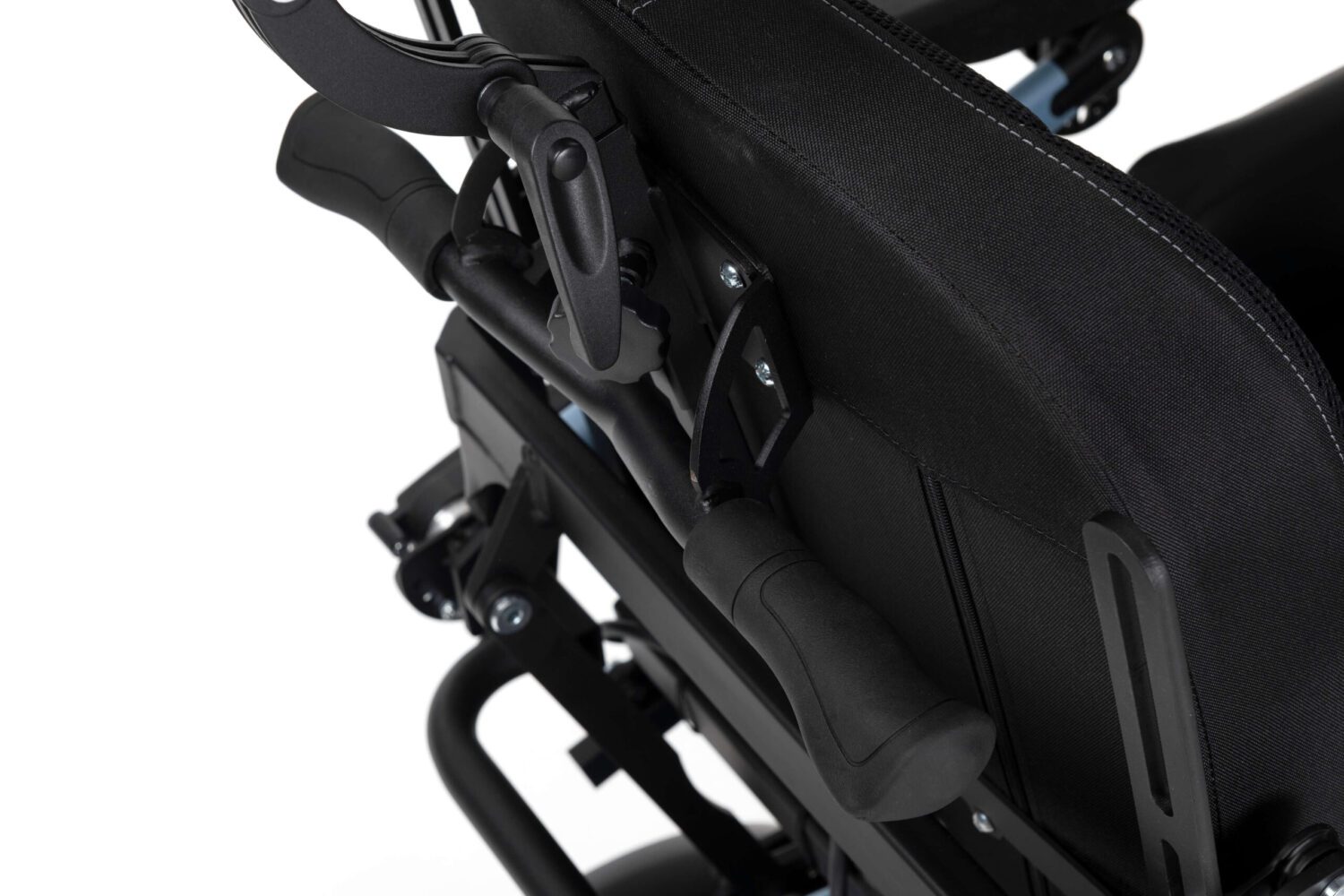 Oparcie odchyla się pozycji leżącej tylko w wózku o szerokości siedziska 45 cm. W wózku o szerokości siedziska 39 cm odchyla się do pozycji pół leżącej.